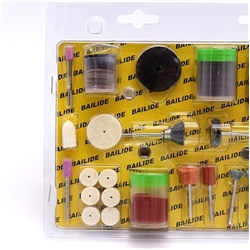 Incredible selection of practical & useful accessories - turns your rotary tool multi-function. Includes a large variety of mounted grinding stones, diamond, and burrs, metal. Large & small sanding drums with rubber mandrels, wool polishing wheels, felt bobs, rouge. Dozens of cut-off, sanding, and abrasive wheels, saw bit, mandrels, and collet. Multi-purpose DIY assortment. Ideal for cutting, carving, sanding, grinding, cleaning and polishing.