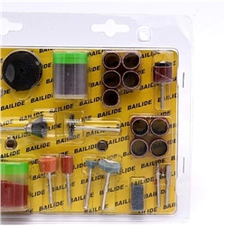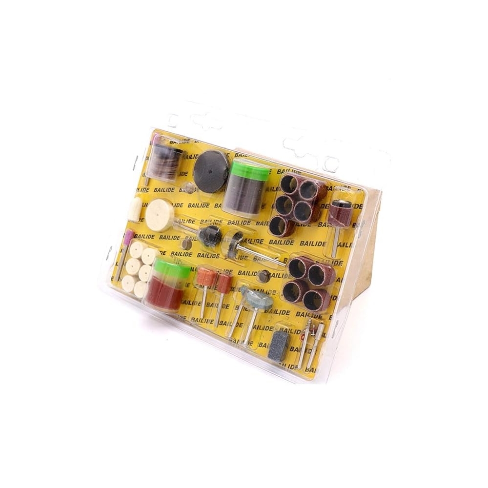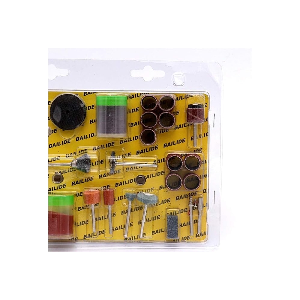 Incredible selection of practical & useful accessories - turns your rotary tool multi-function. Includes a large variety of mounted grinding stones, diamond, and burrs, metal. Large & small sanding drums with rubber mandrels, wool polishing wheels, felt bobs, rouge. Dozens of cut-off, sanding, and abrasive wheels, saw bit, mandrels, and collet. Multi-purpose DIY assortment. Ideal for cutting, carving, sanding, grinding, cleaning and polishing.